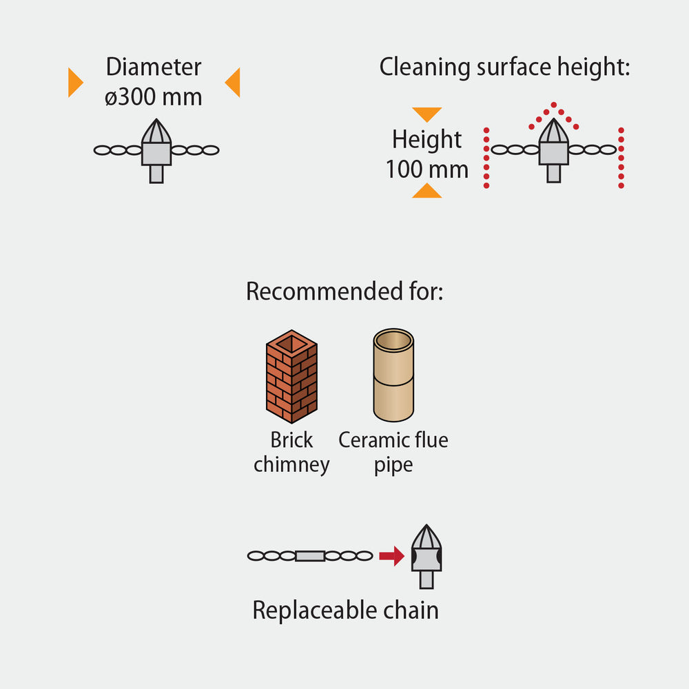 - Efektyviai valo kietas kaminų nuosėdas – pašalina suodžius ir degimo dervas.