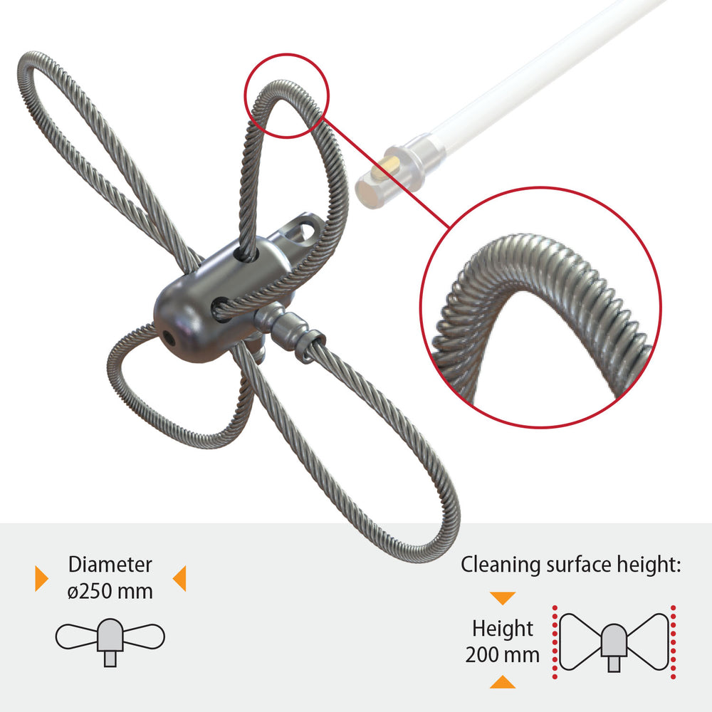 De TORNADO Schoorsteenborstel is vakkundig ontworpen voor het effectief reinigen van schoorstenen en kanalen, speciaal gericht op het verwijderen van hardnekkig creosoot- en teerafzettingen. Met zijn duurzame constructie en speciaal ontwerp is deze borstel een essentieel gereedschap voor het behouden van een veilige en efficiënte werking van de schoorsteen.
