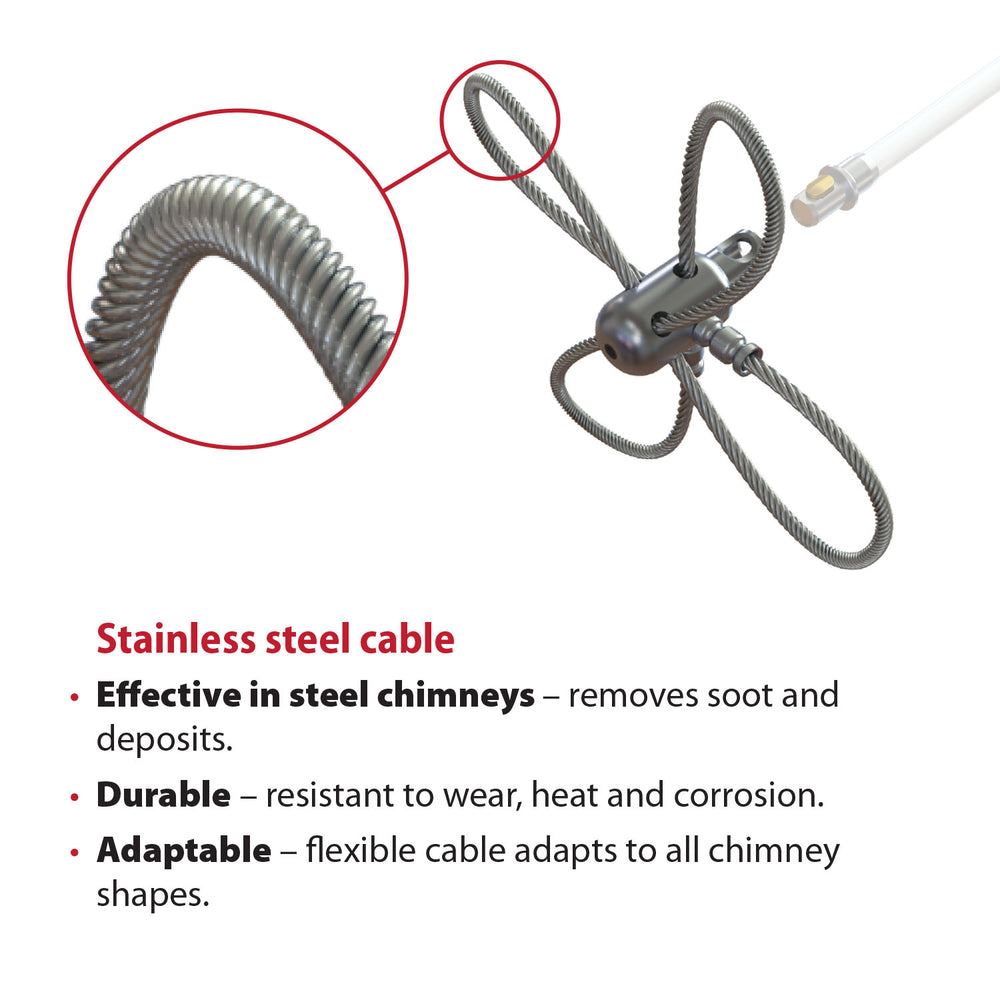 Duurzaam en lang meegaand: Gemaakt om de ontberingen van schoorsteenreiniging te weerstaan, zorgt de roestvrijstalen kabel voor duurzaamheid en betrouwbaarheid op lange termijn.