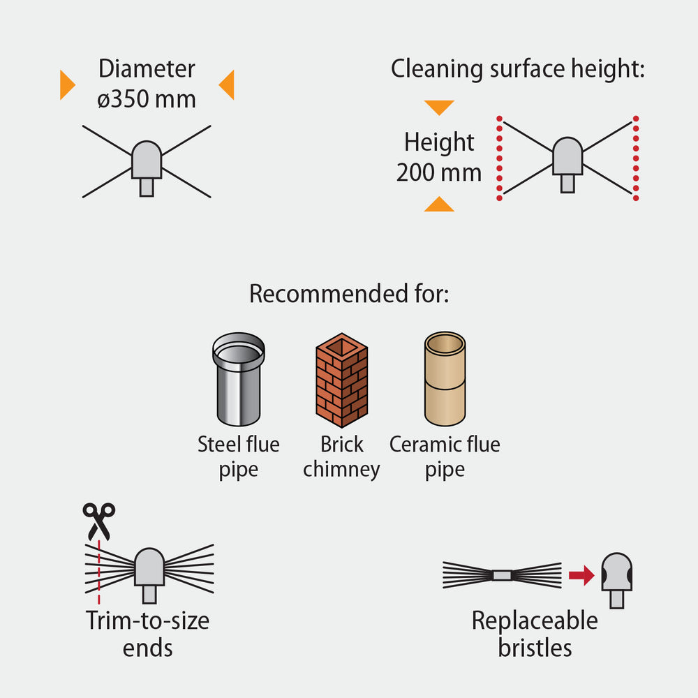 Veelzijdig gebruik: Perfect voor smalle schoorstenen en ventilatiekanalen. TORNADO PRO ventilatieborstel past zich aan verschillende toepassingen aan, waardoor het een veelzijdige aanvulling is op je schoonmaakgereedschapskist.