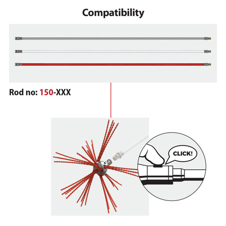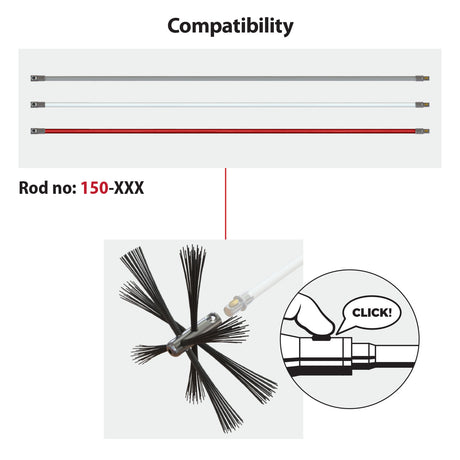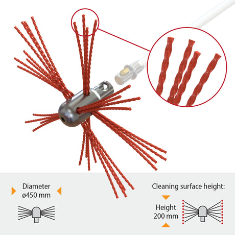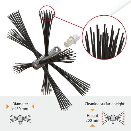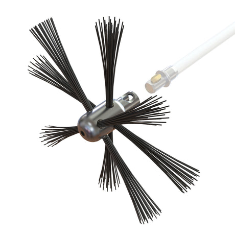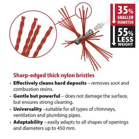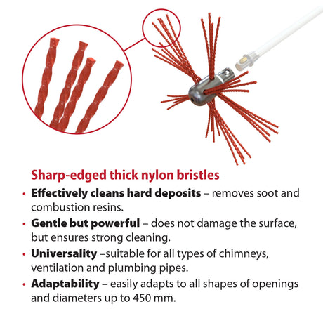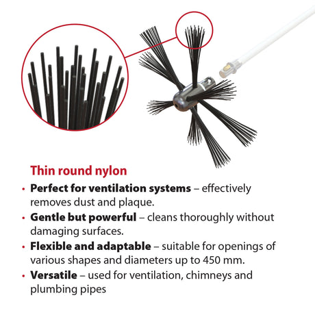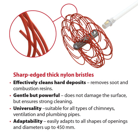 Je kunt alle soorten schoorstenen - metaal, baksteen, rond, ovaal of rechthoekig - reinigen met de flexibele nylon borstel.