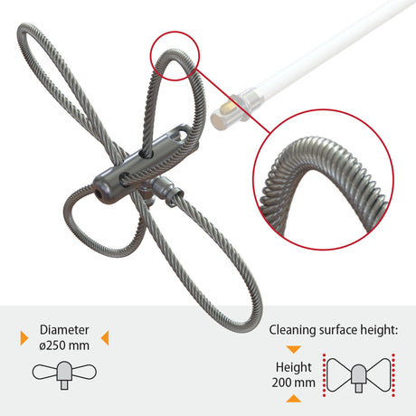voor het reinigen van schoorstenen, zowel van onderaf als van bovenaf. Kan ook worden gebruikt voor het reinigen van ventilatieopeningen.