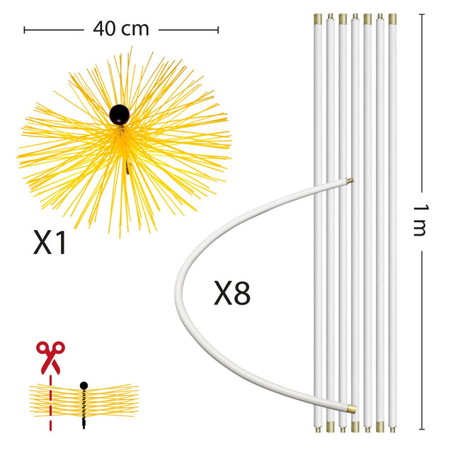 Chimney Cleaning Kit: 1m x 8 + 400mm Brush (Total Length: 8m)